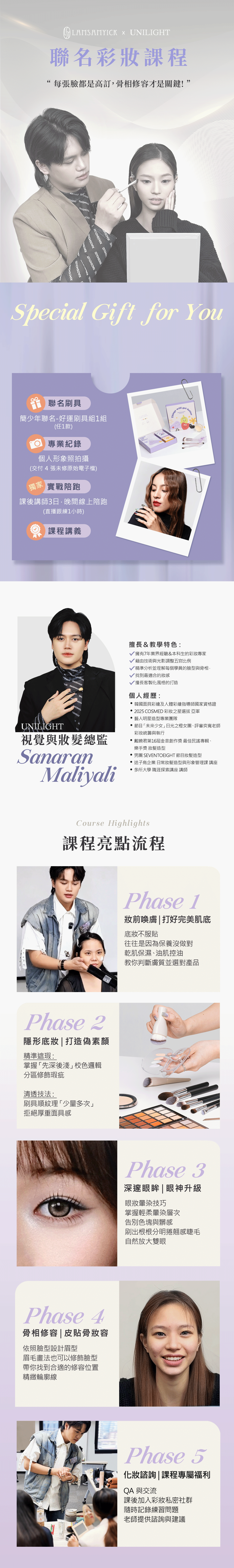 ※ 本課程由林三益提供上妝刷具,學員上課時需自備習慣保養品、彩妝品、其他上妝工具