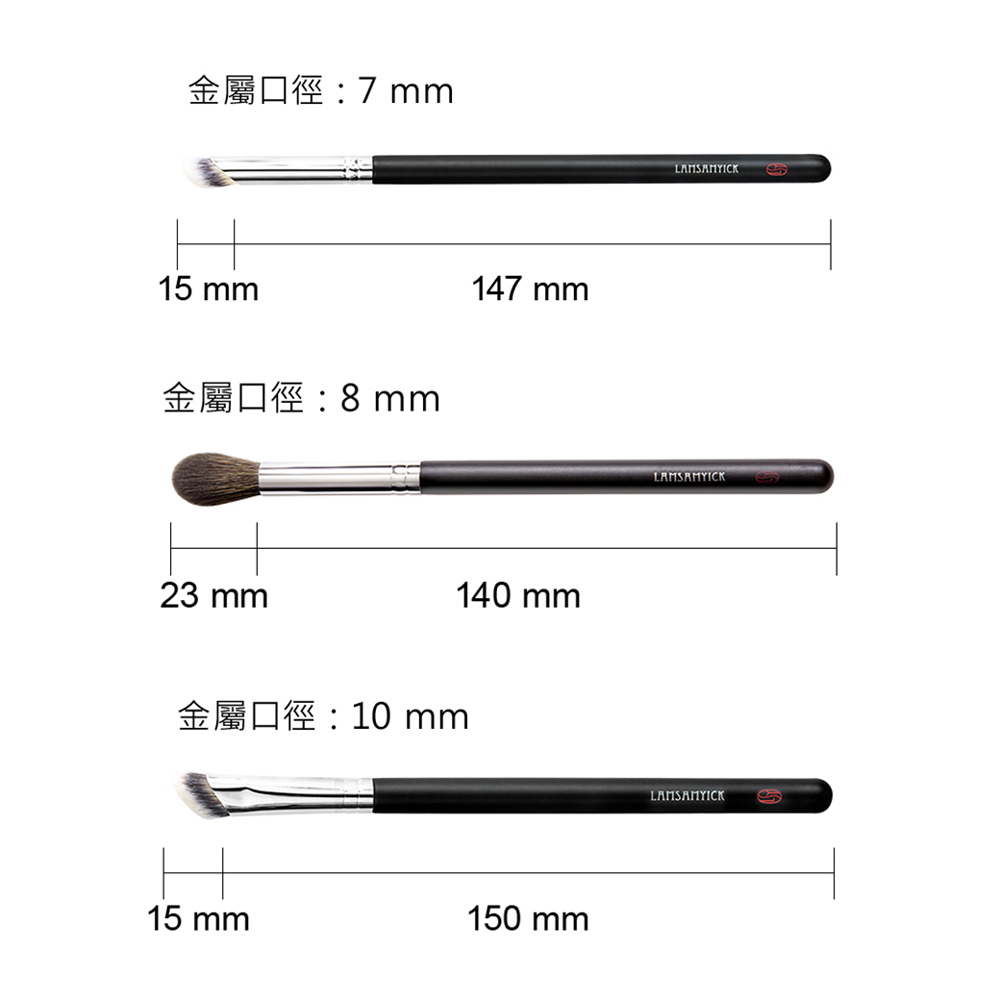 特色:帶厚度的斜弧邊設計,使刷色更集中,可正確的畫出修容(或提亮)在臉上呈現的範圍。