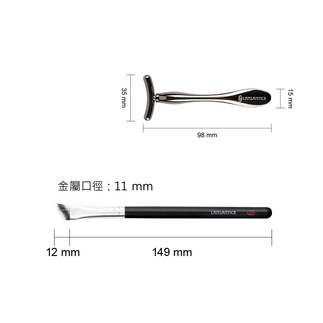 特色:斜切刷面設計,刷毛保留筆鋒並帶些許厚度、筆刷柔韌.,以點拍方式可將妝品拍入毛孔內。