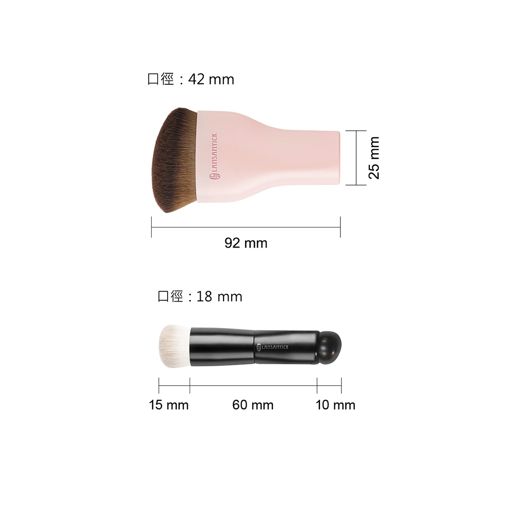 ●點點雙頭刷(捲曲化纖毛):雙頭設計,兼具刷毛及海綿的優點,利用「點、拍、按、壓」的簡單技巧,就可淡化大範圍瑕疵,打造自然遮瑕及偽素顏底妝。