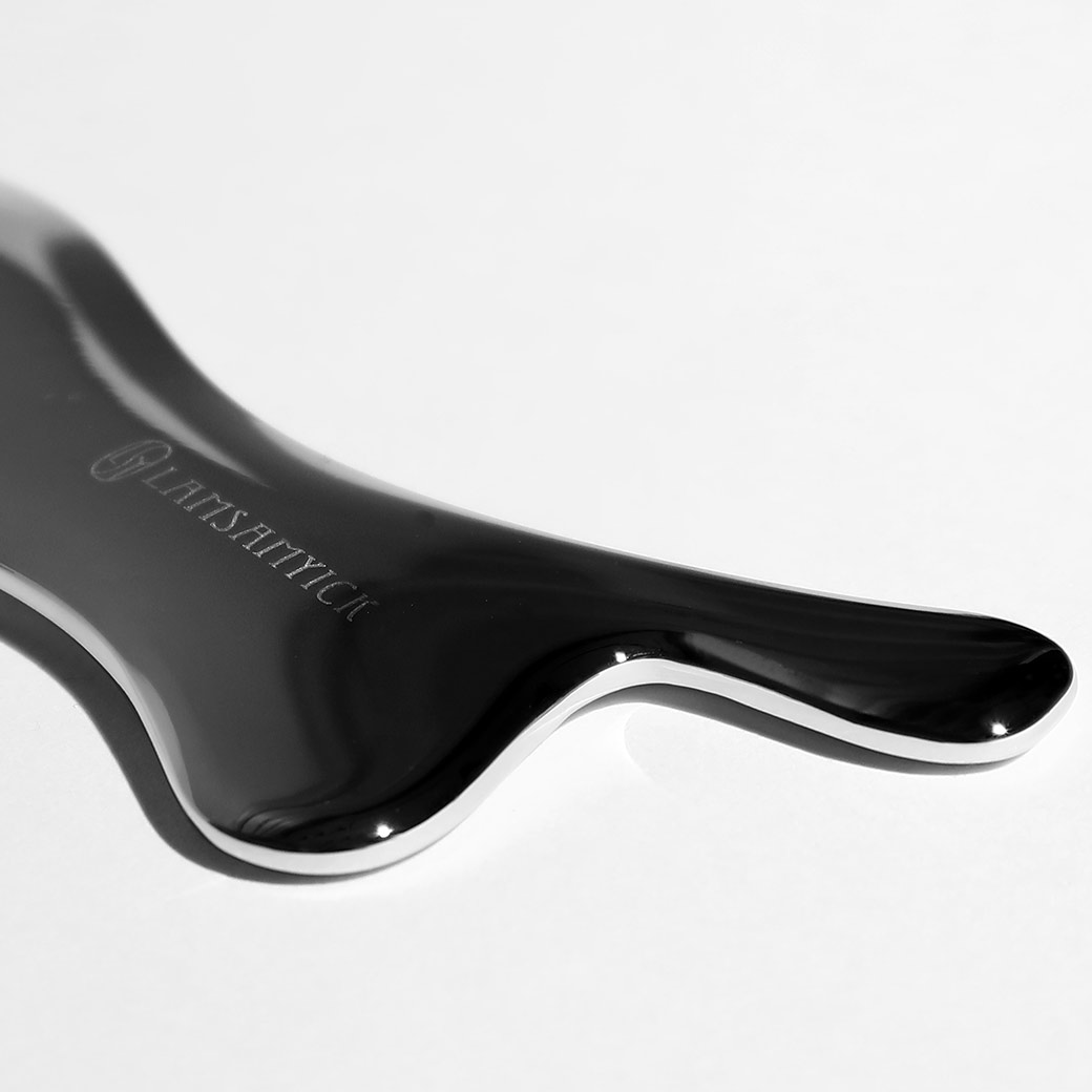 ●紓壓按摩器(鋅合金):L型尾部設計可完美貼合下顎線,包覆臉側肌膚,達到放鬆肌肉、調塑臉部輪廓效果。