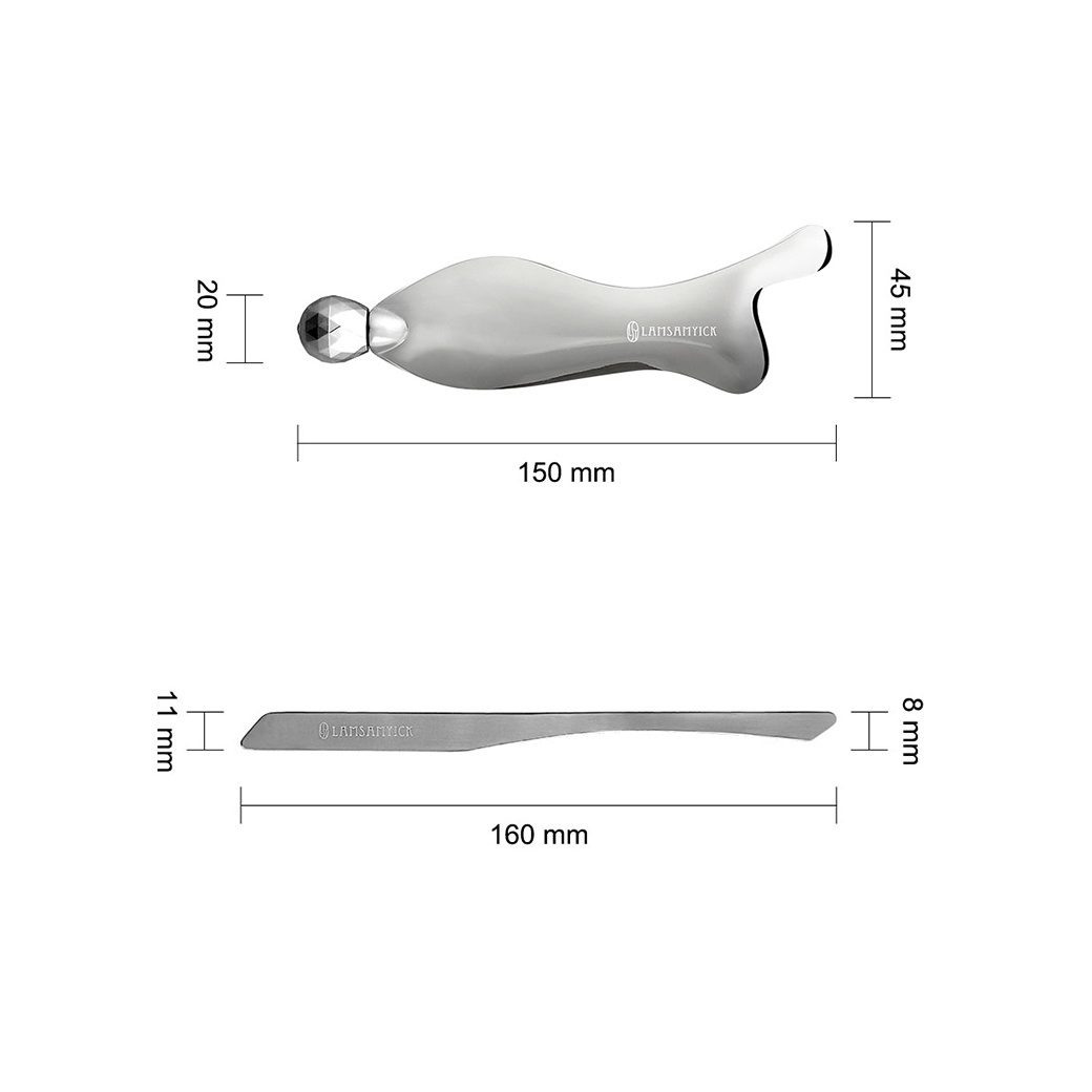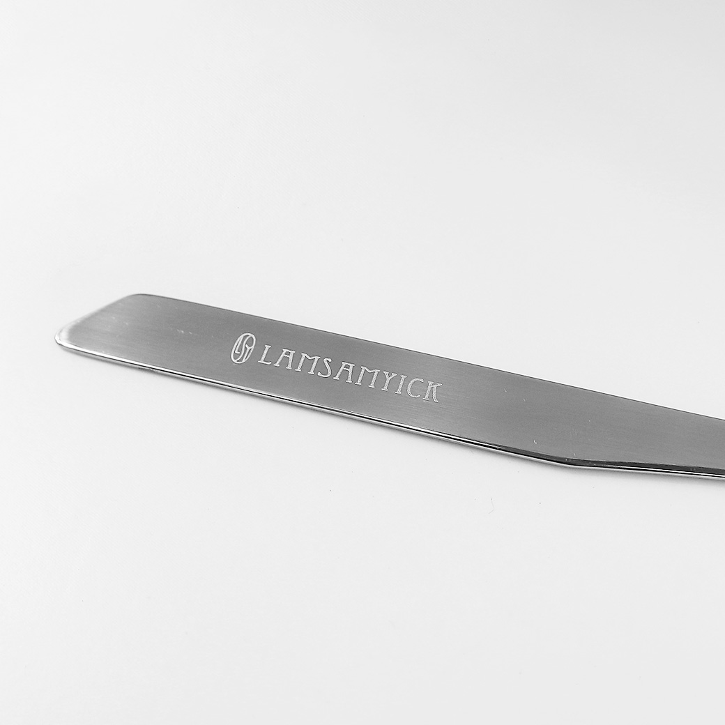 ●粉底刮棒 (不銹鋼): 大面積光滑刀面,一抹就將粉底均勻塗抹在臉上,節省粉底使用量。