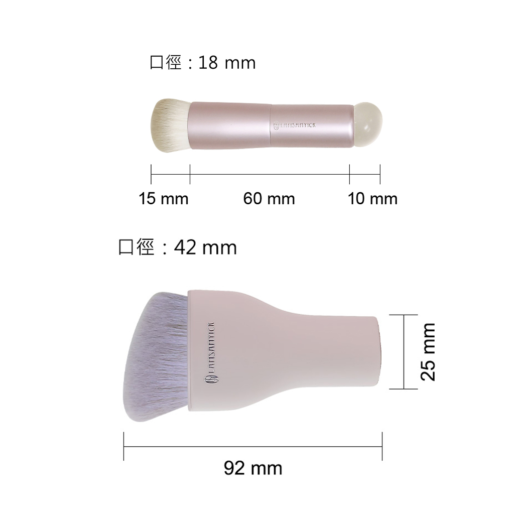 白色刷毛:0.06mm捲曲化纖毛柔軟親膚,用點拍手法上遮瑕品,可多次疊擦,妝感輕薄不厚重,遮瑕度中等。