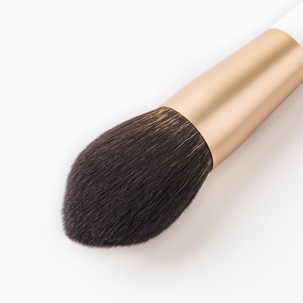 ●蜜粉.粉餅定妝刷-尖尖刷(白金色)(化纖毛):尖錐狀刷毛,在鼻翼凹溝、眼周定妝可使妝容更加精緻。