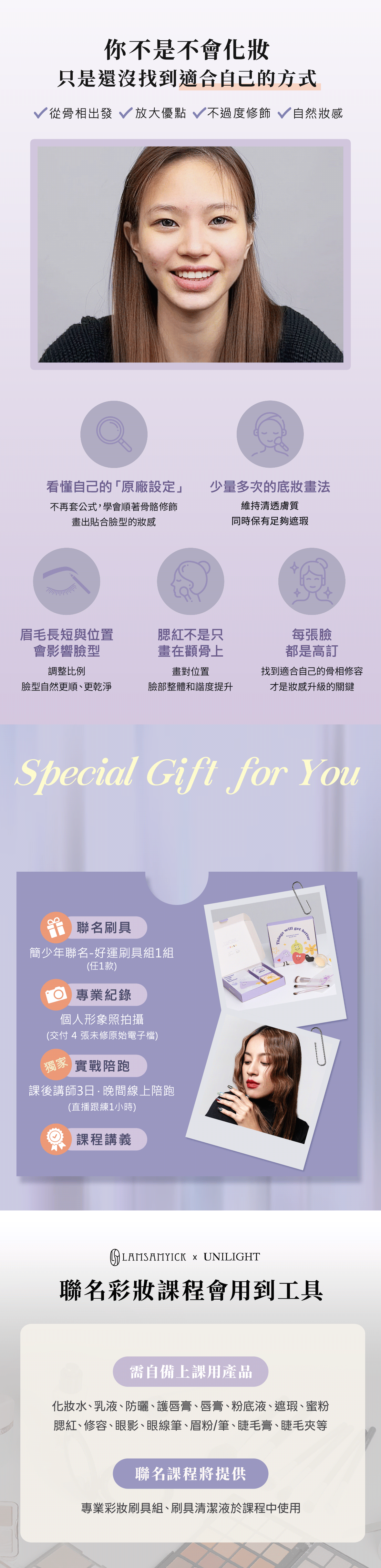 【注意事項】 ※ 報名付款後,須加入林三益官方LINE@,提供個人資訊 (報名姓名/手機/Email/上課主題名稱/上課日期) ,開課前三天發送開課資訊,憑通知現場報到 ※ 若因個人因素無法前往,可轉讓資格給朋友,需於開課前七天(不含假日)事前向林三益官方LINE@通知,如未通知且當日未到者,不予補課及退費 ※ 課程時間:4/10(五)18:30-21:30、4/11(六)、4/12(日)13:30-16:30 , ※ 本課程為專屬客制,一旦售出不另行退費,若因氣候因素而無法參與課程,可協議上課時間 ※ 為尊重其他學員,請勿遲到或於課堂期間干擾上課,遲到及未到者視同放棄,不予補課及退費 ※ 為確保上課品質,8人開班(至多15人),若不足8人時另協調時段開班,於開課前五天通知學員 ※ 課程另贈當日好運刷具組乙組(3款擇1)、個人形象照拍攝(交付 4 張未修原始電子檔),如需後製需圖,需另加收費用,以現場攝影提供為主 、課後講師3日晚間線上陪跑(直播跟練1小時)、課程講義 ※ 本課程可使用會員購物金折抵,恕無法與滿額贈品/現折、折價劵、優惠序號合併使用 ※ 本課程由林三益提供上妝刷具,學員上課時需自備習慣保養品、彩妝品、其他上妝工具 ※ 為尊重智慧財產權,請留意課程進行時無法錄音、錄影,但可以拍照記錄 ※ 學員肖像、姓名及課程錄影照片,除基於宣傳用途之播放、展出或登載行為外,不另做其他用途 ※ 林三益保有延後、調整上課日期之權利,如有任何未盡事宜,林三益將另行公告 ※ 完成報名繳費之學員,視為同意以上注意事項 |